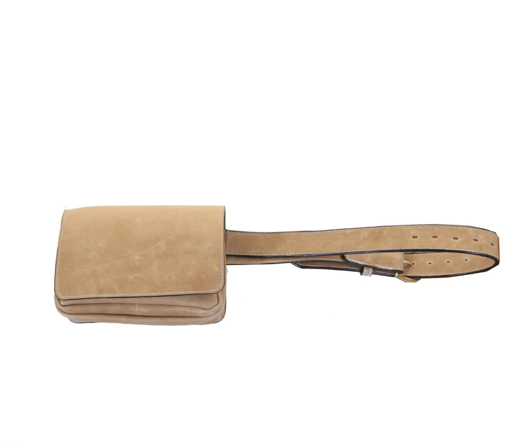 Bum Bag in Camel Pull Up Leather with Brass Hardware.