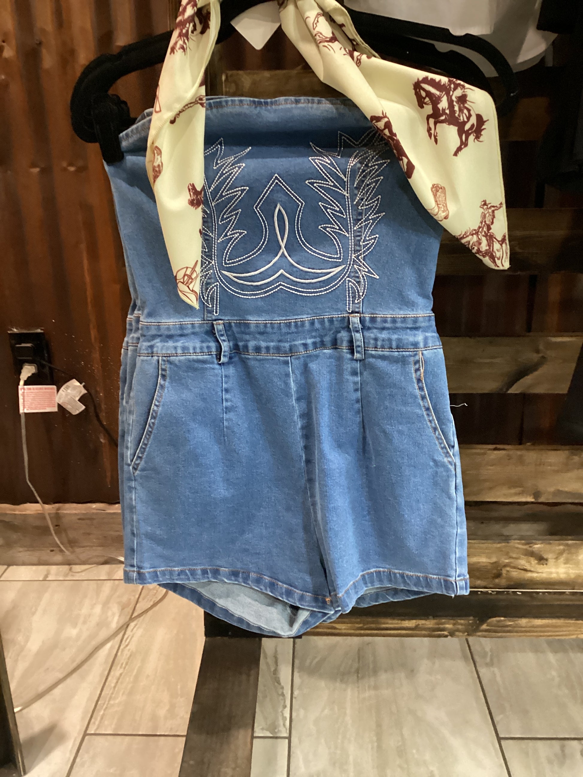 Boot Stitch Denim Romper
