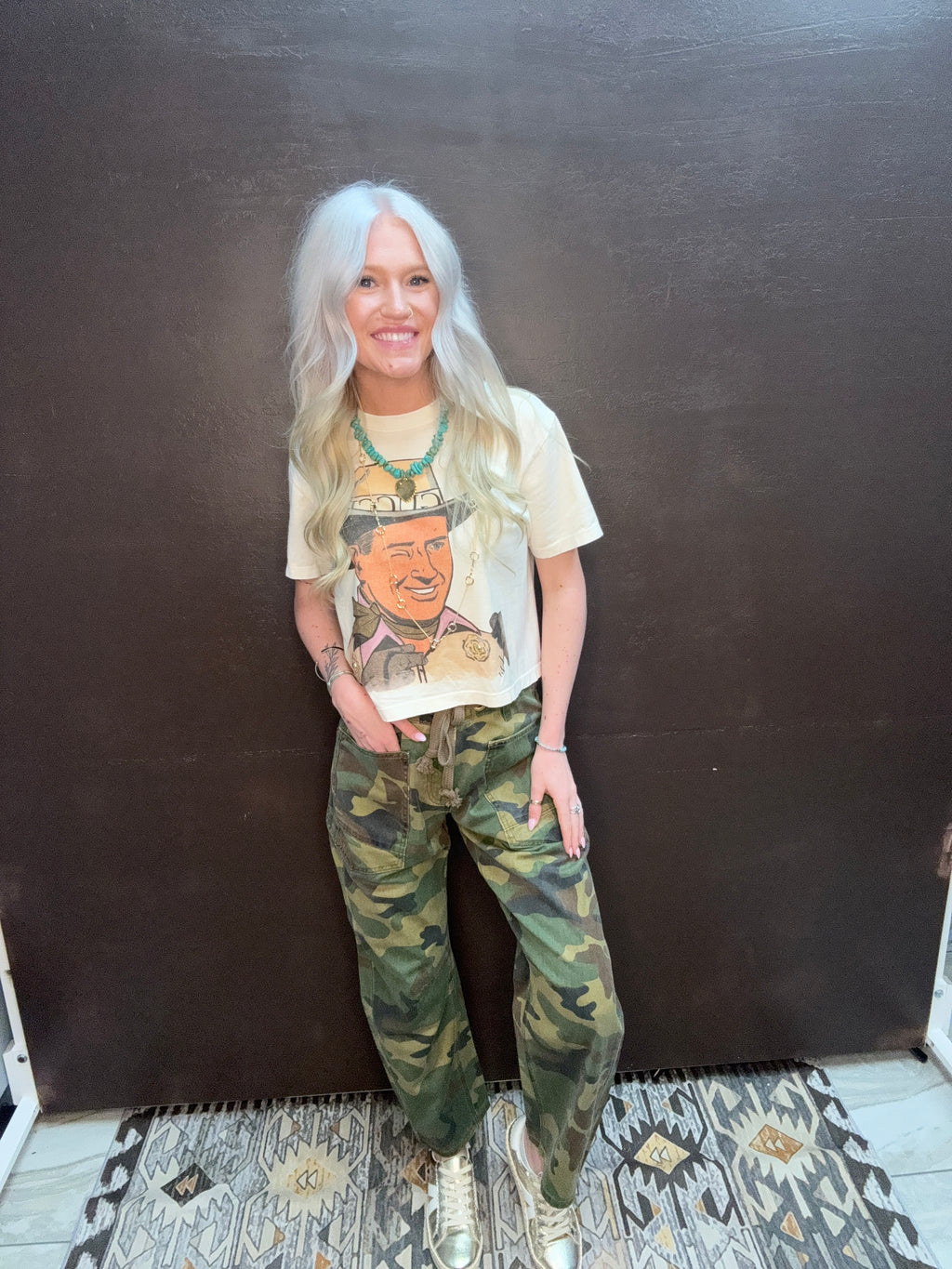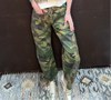 Adorable barrel legged camo pants. Ready to wear to your next Friday night game or on a fun girl's trip.