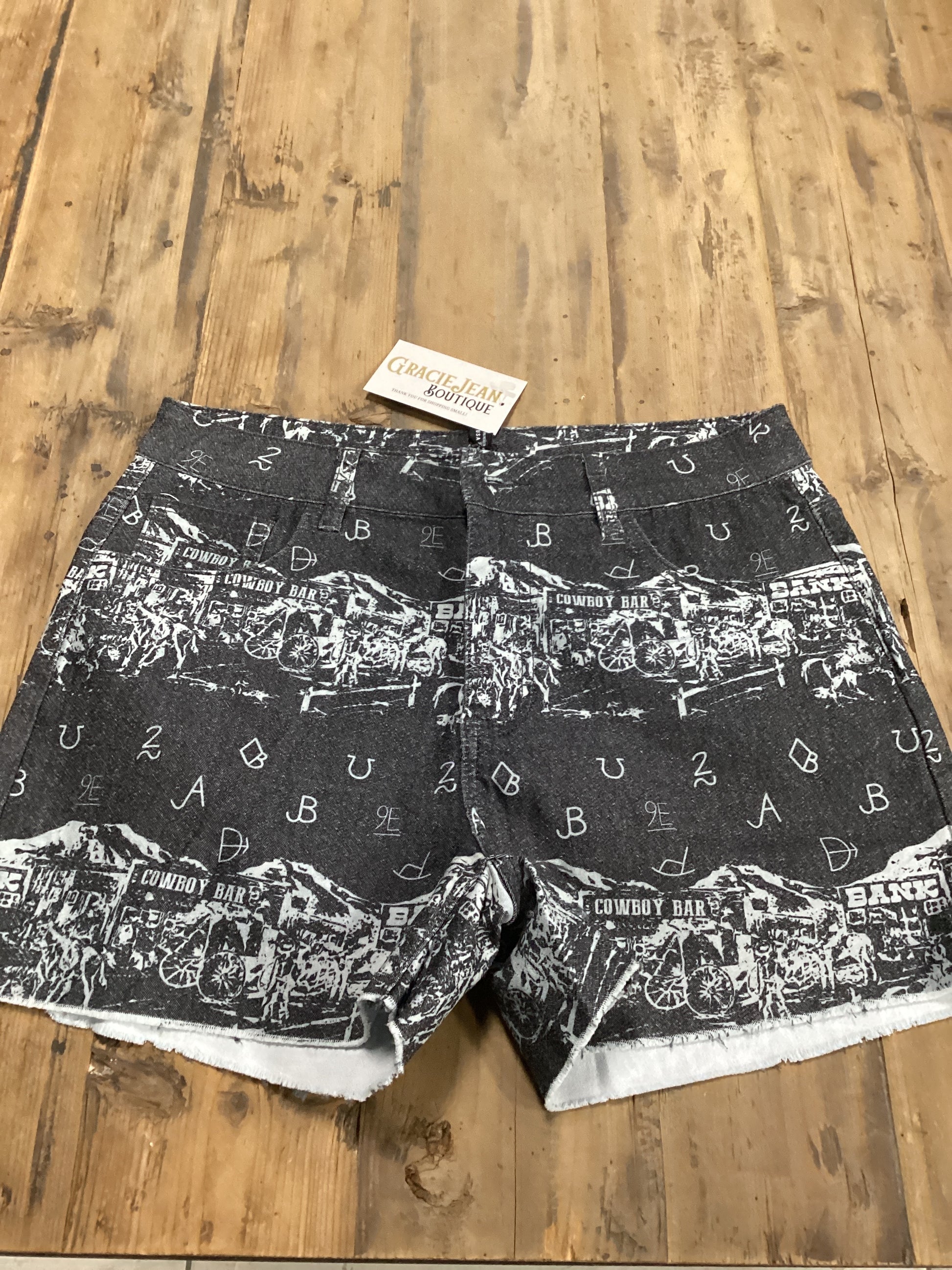Two Fly Black and White Western Print Shorts