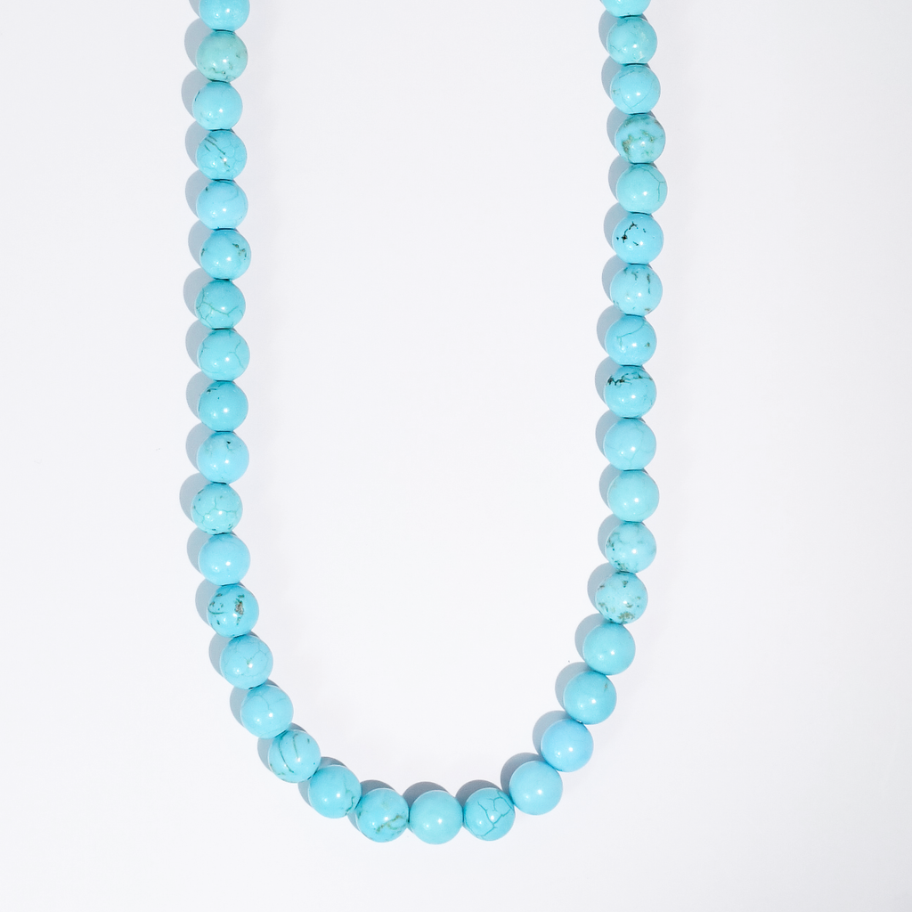 Elevate your look with the timeless beauty of COLORFUL GEMSTONE! Meet your new happy place-strung in beads. This necklace features smooth turquoise-blue beads that radiate gold energy and cool-girl style. Easy to layer or wear solo. Length 17 inches + 2 inches extender