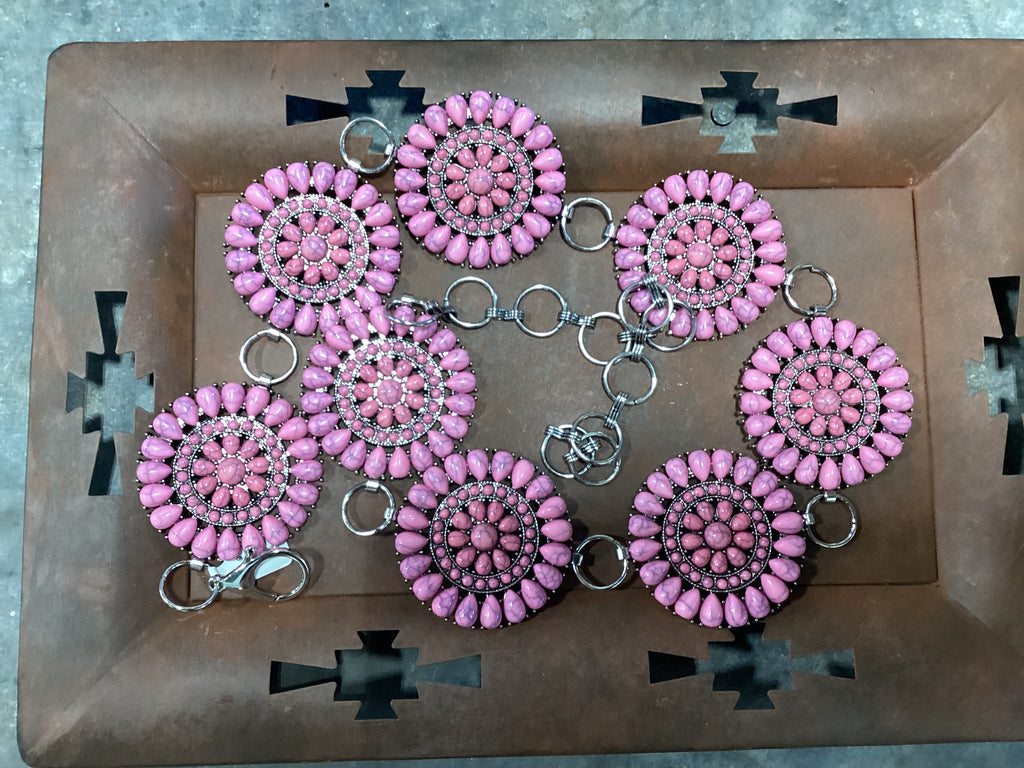 Faux Circle Concho Belt - Pink