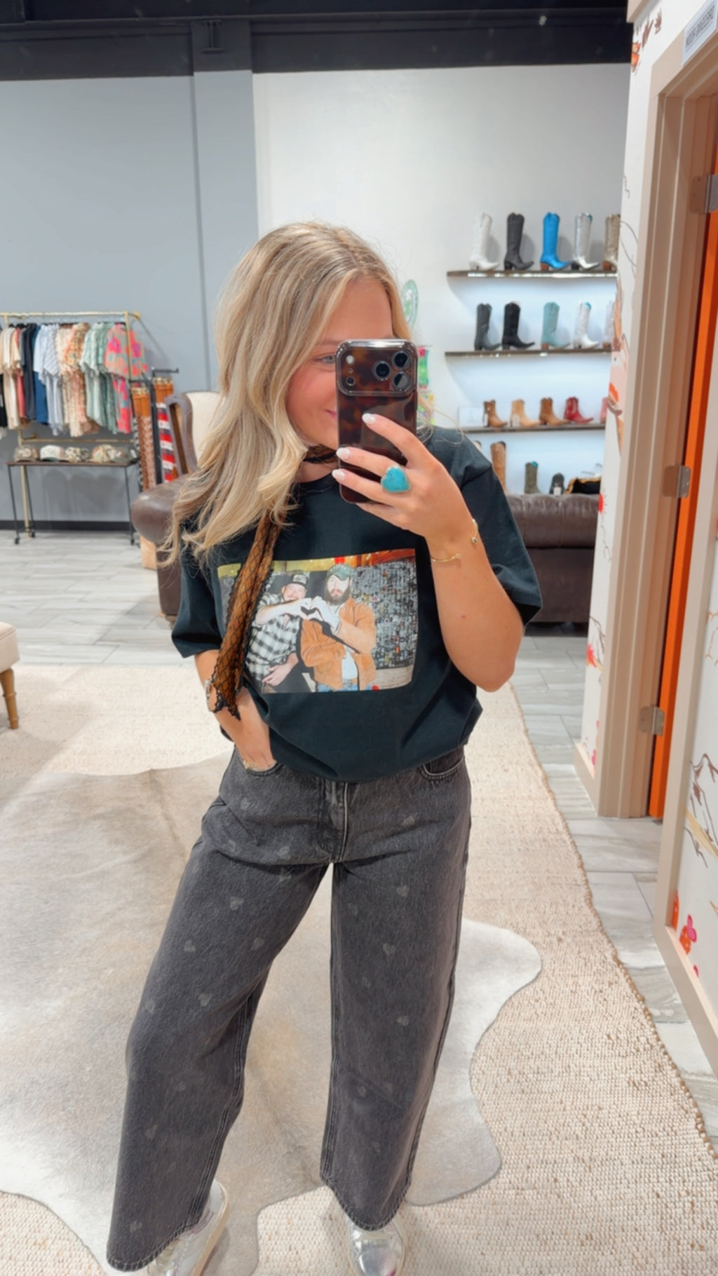 Black Heart Denim Pants are edgy yet playful jeans in a sleek black wash, featuring heart-shaped details and a comfortable fit for a stylish, statement-making look.