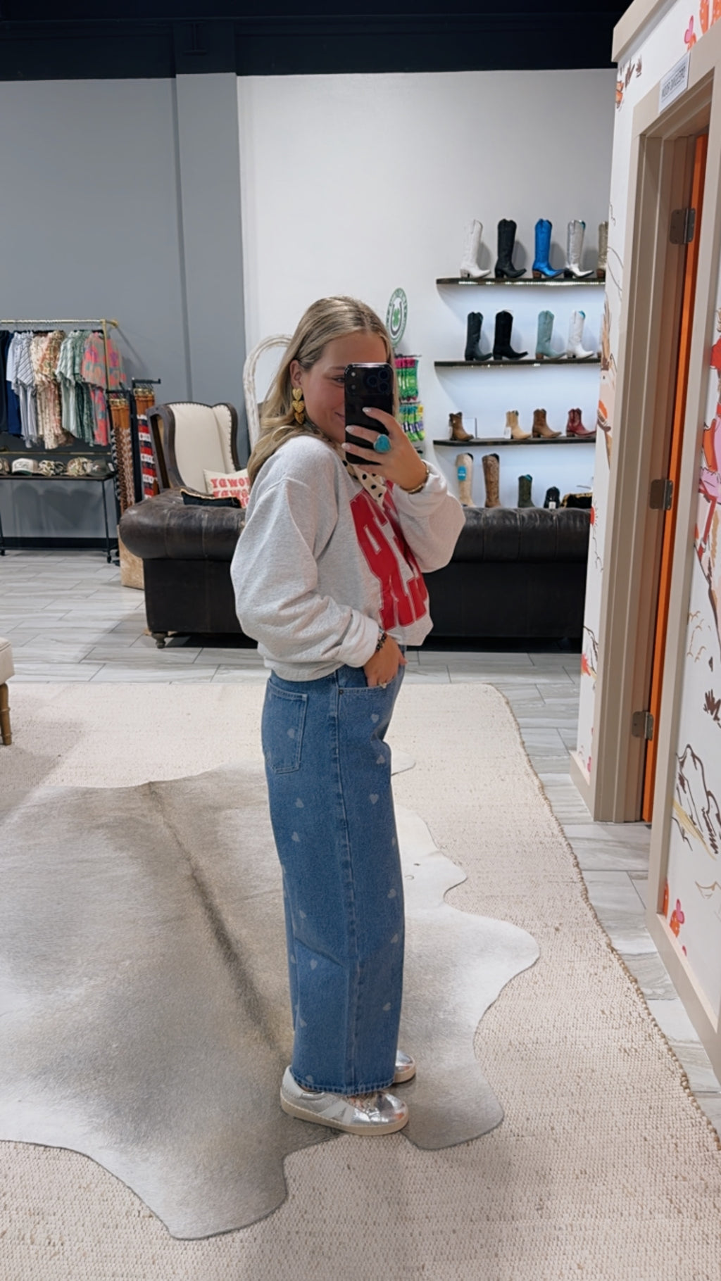 Heart denim pants are playful jeans featuring heart-shaped details, a comfortable fit, and a fun, whimsical style that adds a charming touch to any outfit.