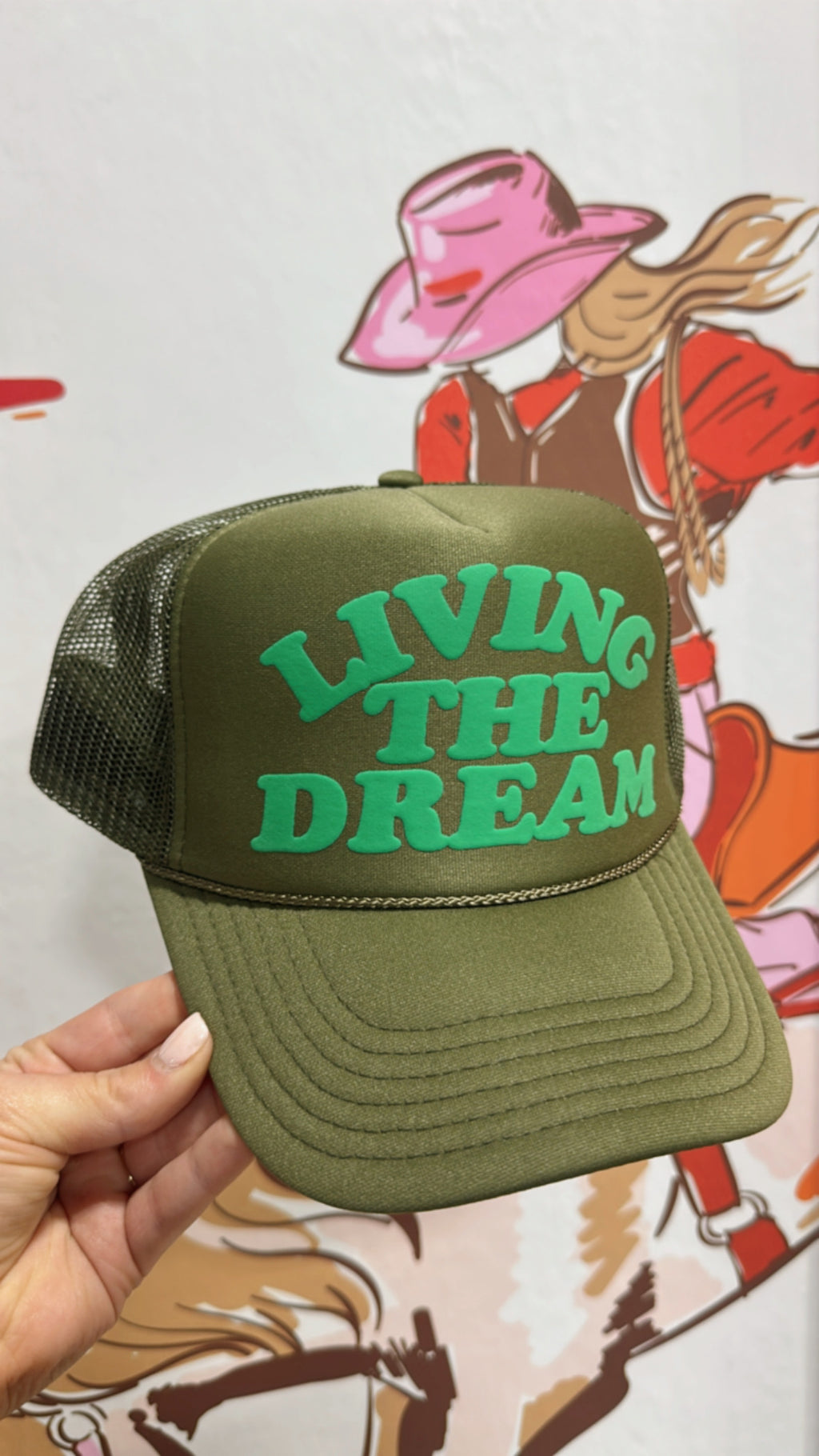 Living The Dream Trucker - Olive/Neon Green