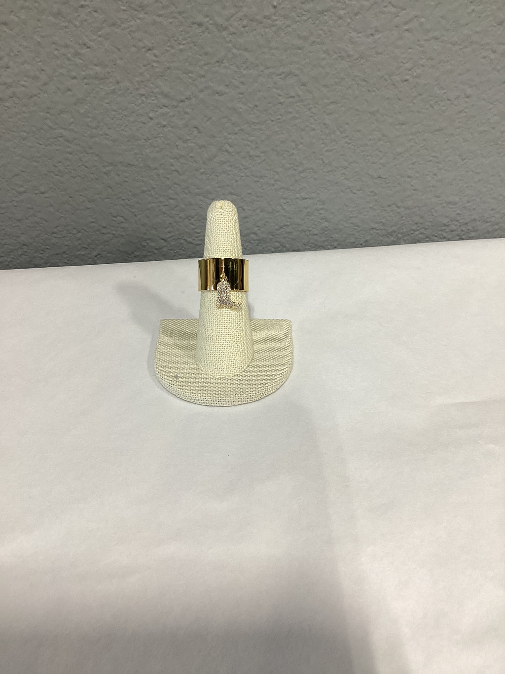 This bold statement ring features a wide gold band that exudes luxury and confidence. Atop the band sits a miniature boot charm encrusted with sparkling crystals, catching the light from every angle for maximum shimmer. The combination of solid gold tones and dazzling bling creates a striking contrast, making the ring both edgy and glamorous.
