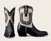 A fresh take on a fan favorite, our updated design brings elevated craftsmanship to a timeless silhouette. The new horseshoe-inspired inlay pattern isn’t just decorative — it’s a nod to tradition, meticulously stitched for added depth and dimension. Every detail is more refined, from the intricate layering of premium leather to the precise hand-finishing that enhances its richness. Paired with a more generous toe box for an effortless fit, The Jolene blends the easy wear of a shorter shaft with the classic Western lines of a cowgirl staple. With retro collar cutouts, our signature toe bug, and soft leather that feels broken in from the first step, it’s a style that’s ready to ride — wherever the music takes you.