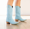 It's giving western. Timeless snip toe and classic cowgirl silhouette. Meet Emma Jane in Powder Blue.