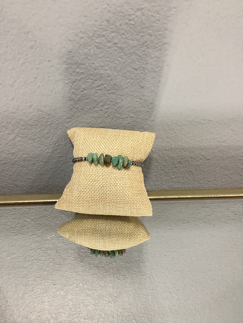 4 mm Navajo Pearls with Turquoise Disks Stretch Bracelet