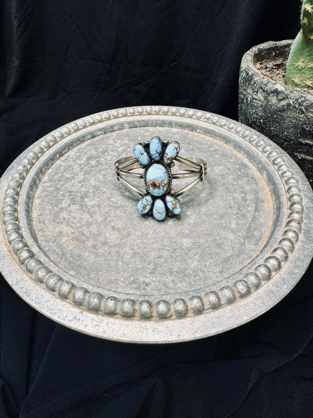 Golden Hills Cuff. Marked P Johnson. Sterling. Native Made