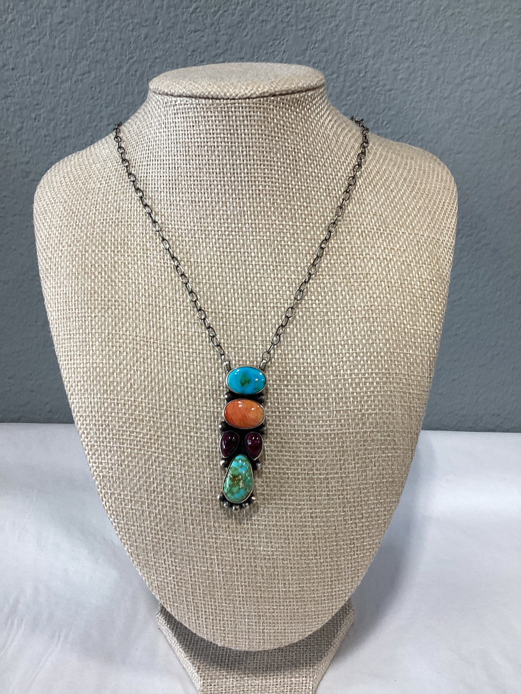 Scott Skeets Navajo handmade multi Colored  necklace  . Total length 20”