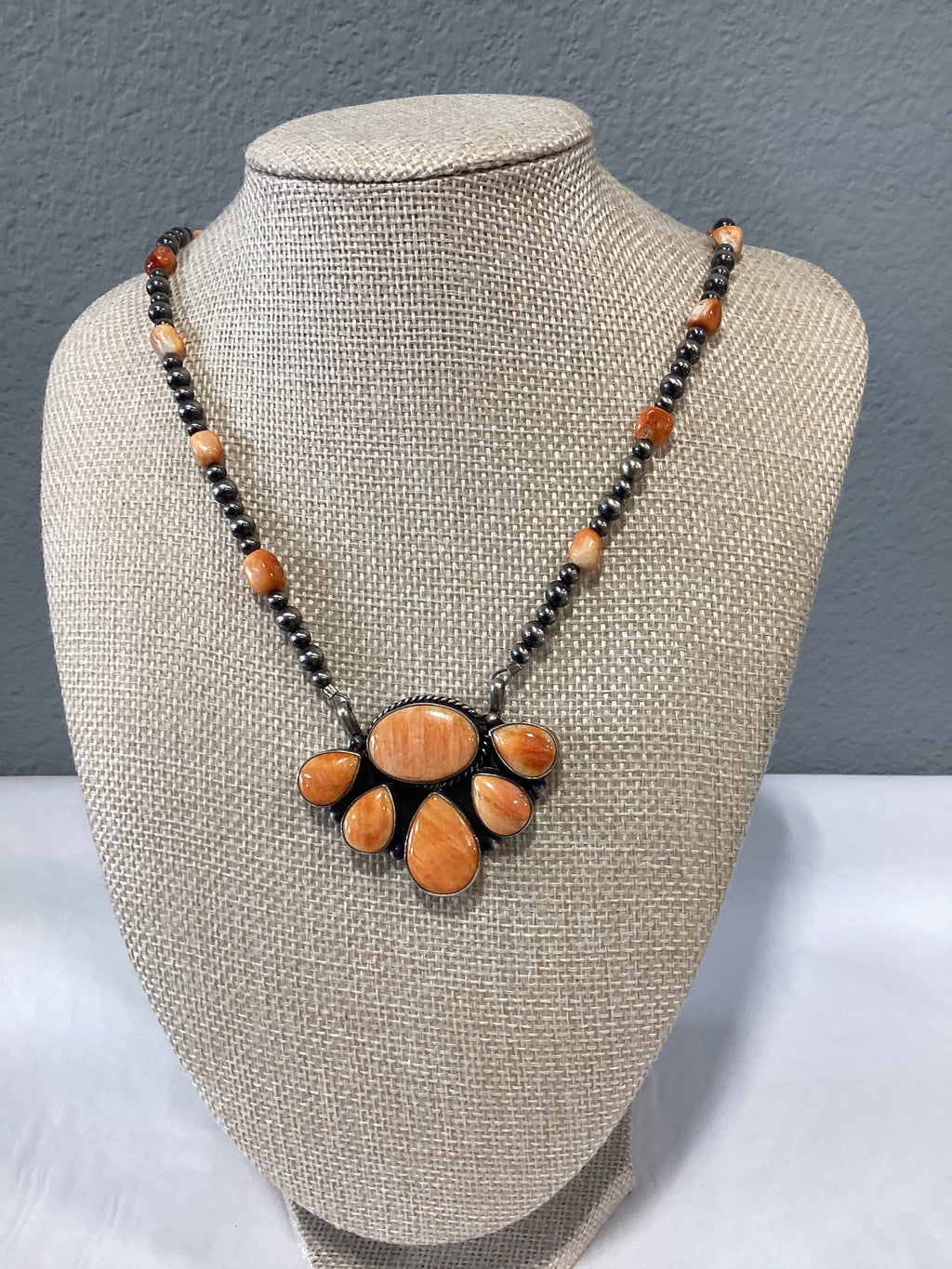 Donavan Skeets Navajo Orange Spiney cluster with Pearl and Spiney chain