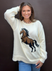 Make a statement with this cozy sweater featuring a bold horse graphic on the front. Crafted from soft, warm knit fabric, it blends comfort with a touch of rustic charm and equestrian elegance. The relaxed fit makes it perfect for layering, while the detailed horse design adds character and standout appeal. Whether you're heading to the stables or just love a countryside-inspired look, this sweater is a unique and stylish pick for cooler days.