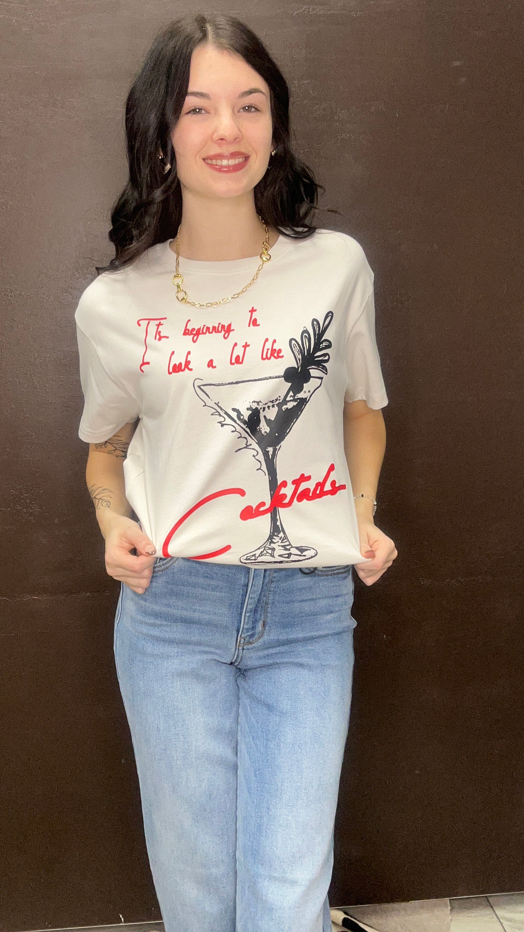 Bring some holiday cheer (and a little sass) to your wardrobe with this playful white tee! Featuring the witty phrase “It’s Beginning to Look a Lot Like Cocktails” alongside fun festive drink illustrations, it’s perfect for parties, happy hours, or cozy holiday gatherings.