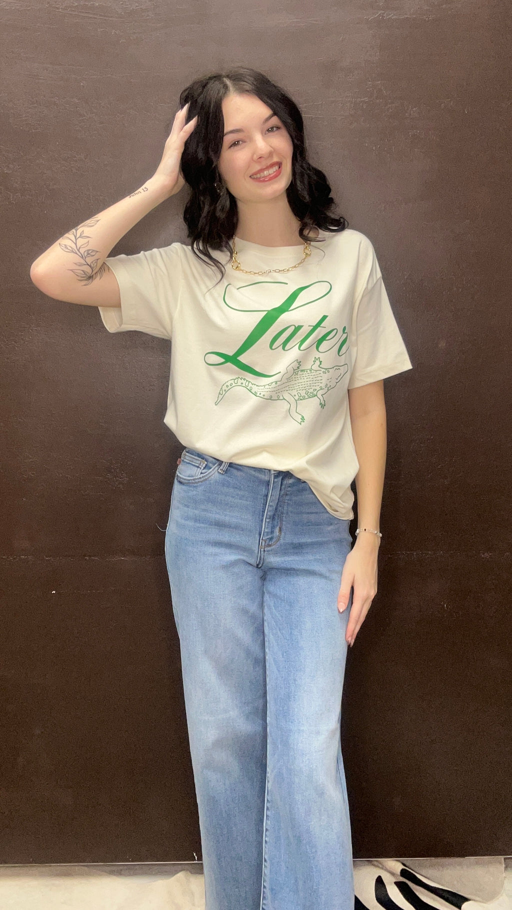 Say goodbye in style with this cheeky and casual tee! Featuring the playful phrase “Later Gator” alongside a cool, cartoon-style alligator graphic, it’s perfect for everyday wear, weekend outings, or gifting to someone with a fun sense of humor.
