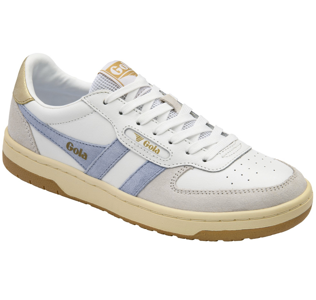 A new addition to the Gola Classics collection, Hawk is court-sport inspired. This timeless sneaker silhouette for women comes in a combination of leather, suede and mesh in white/air/gold and is complemented with a two colour cup sole, the understated combination translates as a ‘relaxed ‘80s’ sneaker giving an easy old skool vibe. Wear with loose denim or your fave midi skirt.