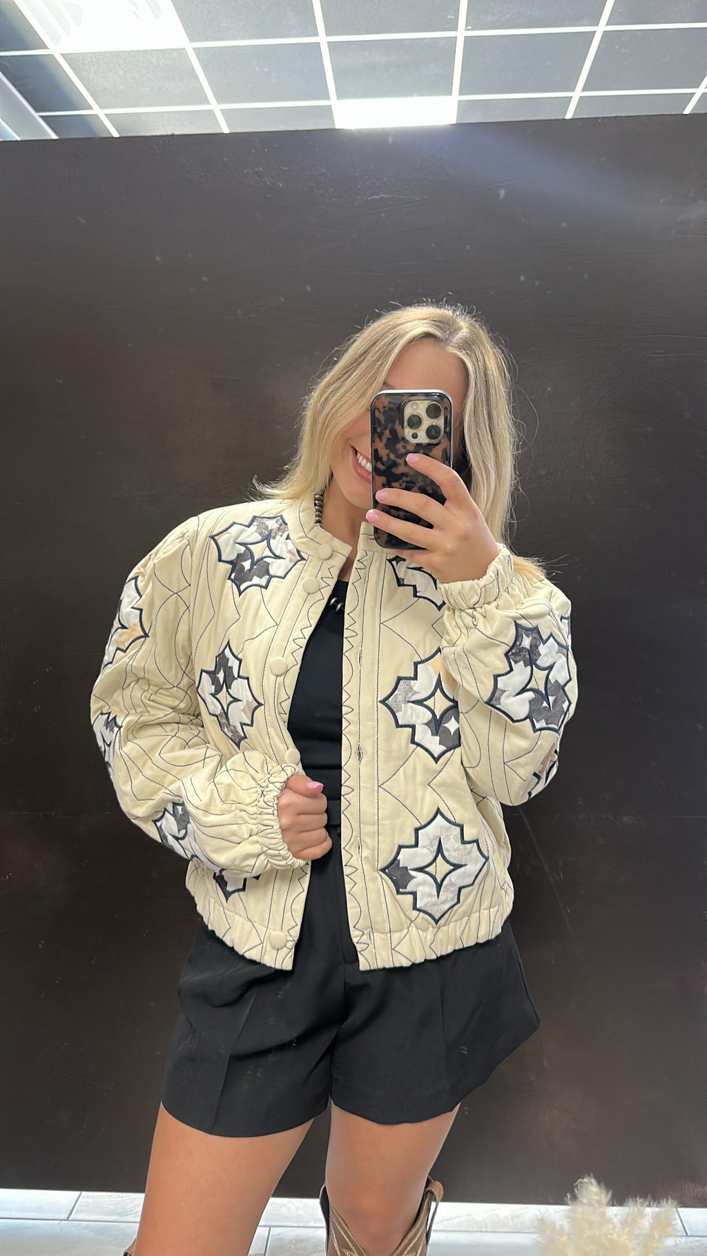 Homespun charm animates a twill jacket textured in cozy quilting and cut to a waist-skimming length.