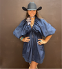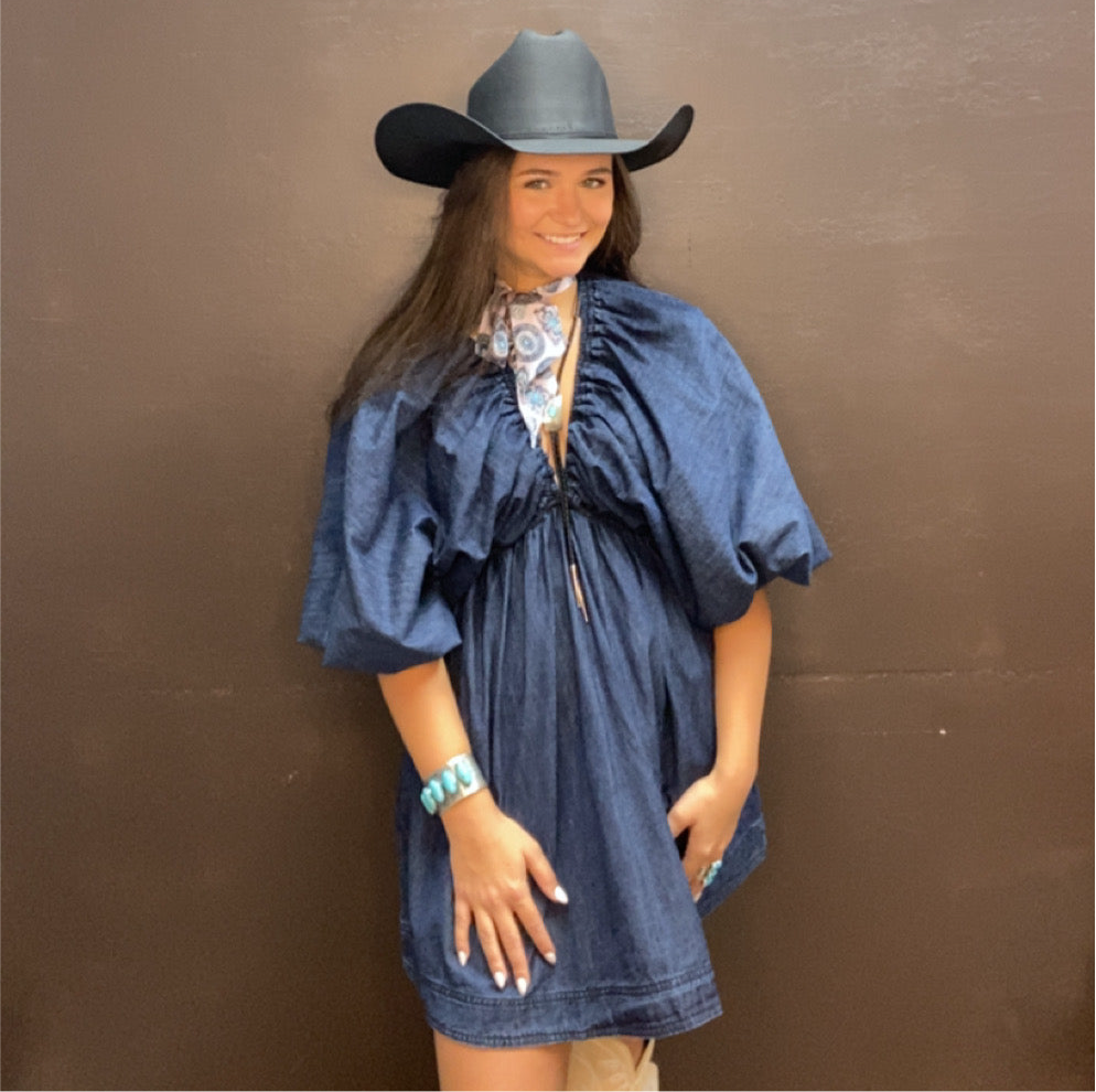 Effortlessly cool and endlessly wearable, this dark denim dress features a flattering V-neckline and a short, above-the-knee cut for a modern, laid-back look. Crafted from structured yet comfortable denim, it offers just the right amount of edge while keeping things casual. Perfect for layering with boots, sneakers, or a jacket, this dress is your go-to for everything from daytime outings to weekend plans.