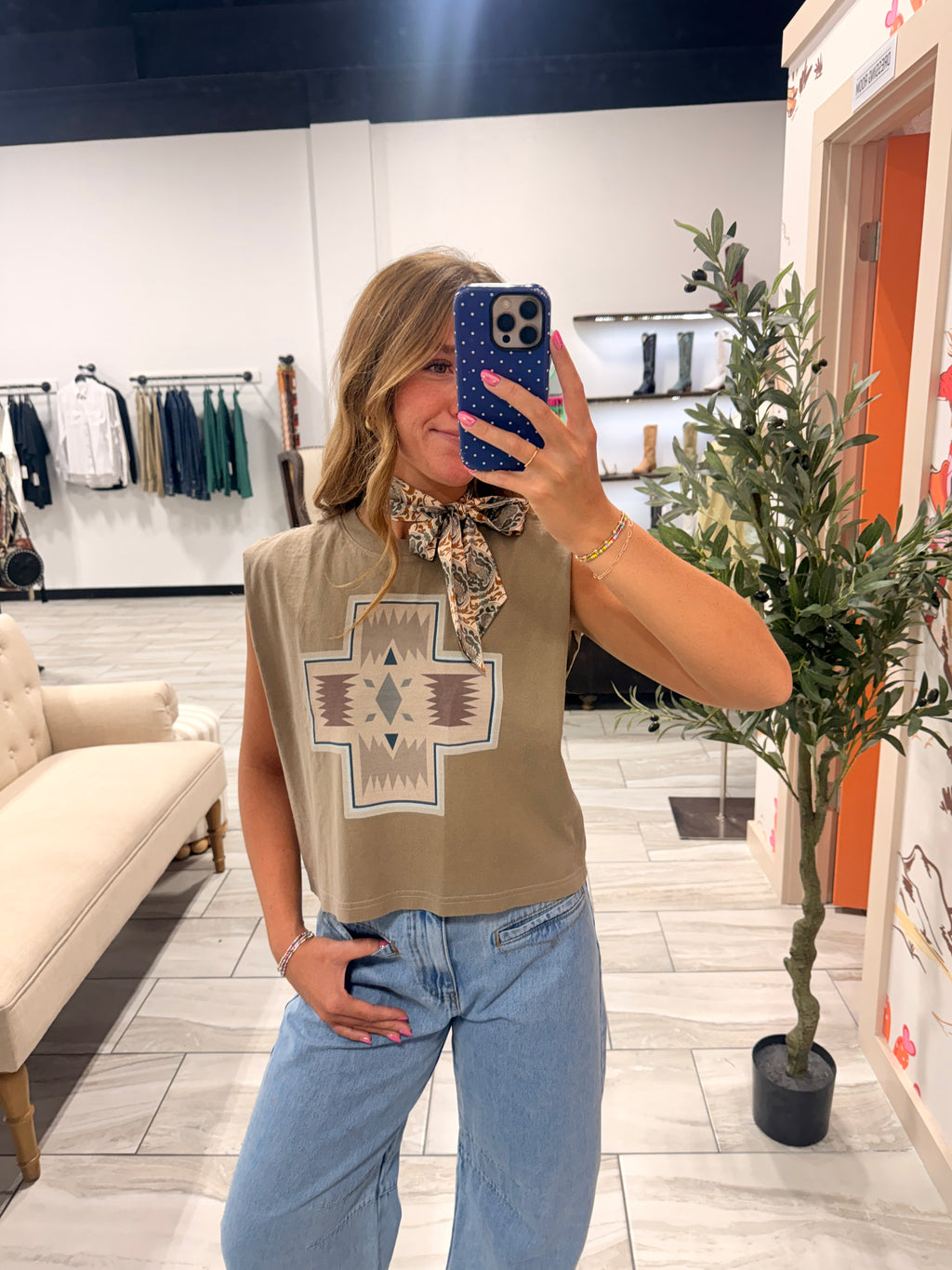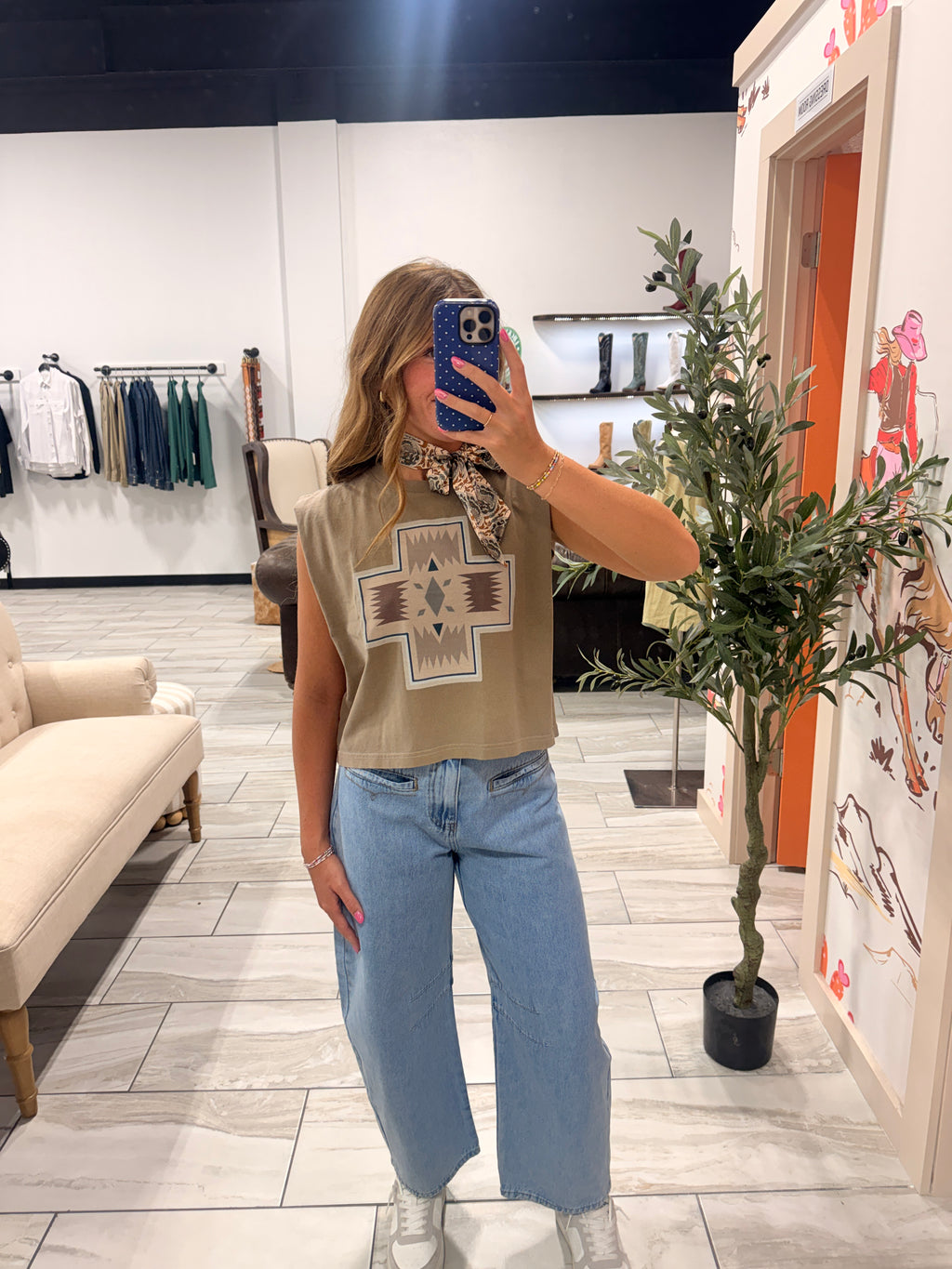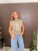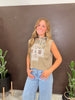 Boxy tank top with a floral chicken graphic and direct-to-garment printing