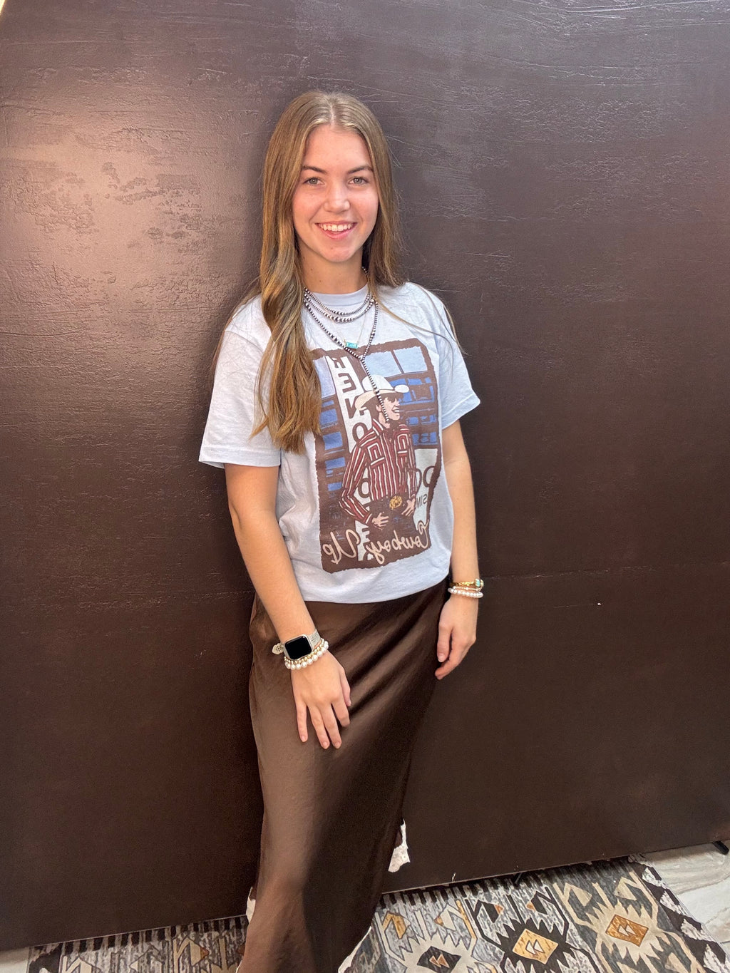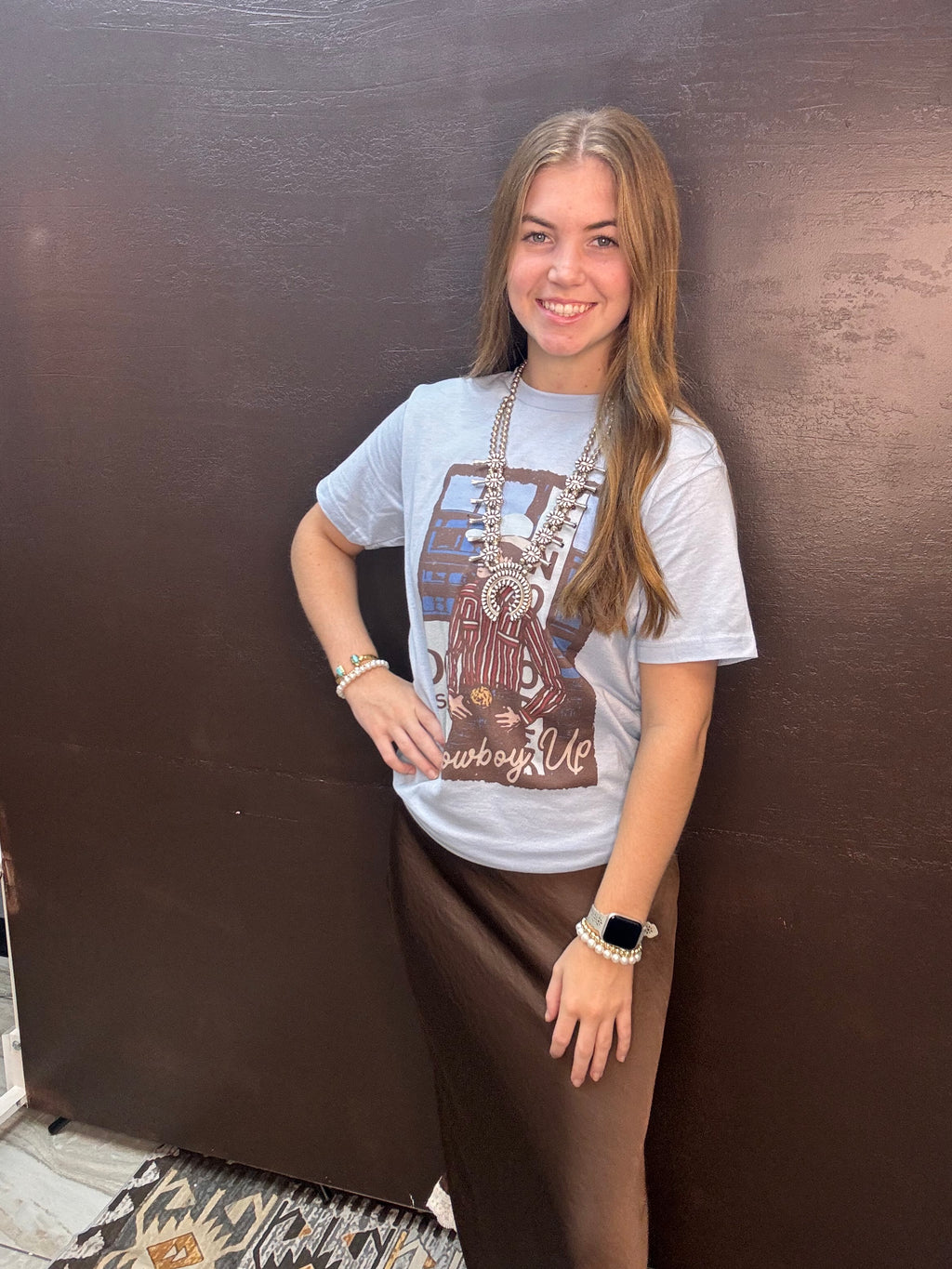 Dark Brown Lace Trimmed Maxi Skirt