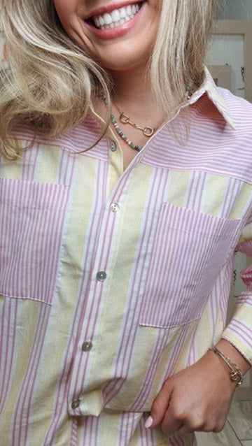 Paradise Button Up Set - Pink/Yellow