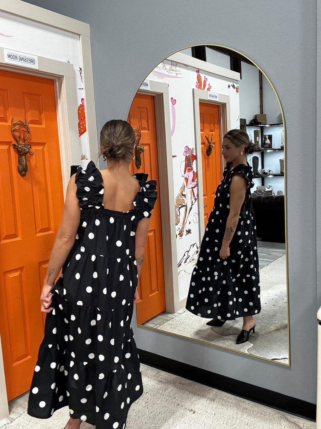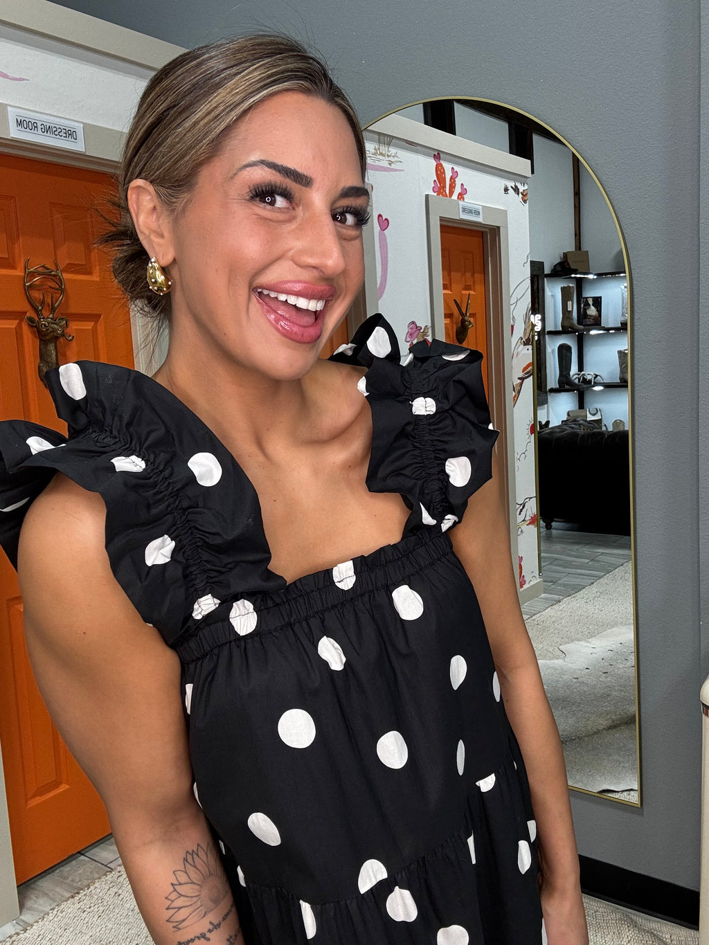 Flutter Polka Dot Dress - Black