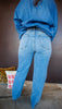 These jeans feature a clean, medium-wash denim with a flattering high-rise waist and a straight-leg silhouette that gently tapers toward the hem. The fit is structured yet comfortable, hugging the waist and hips before loosening through the legs. The style offers a classic five-pocket design with minimal fading and no distressing, making them a versatile staple for casual or dressed-up Western looks.
